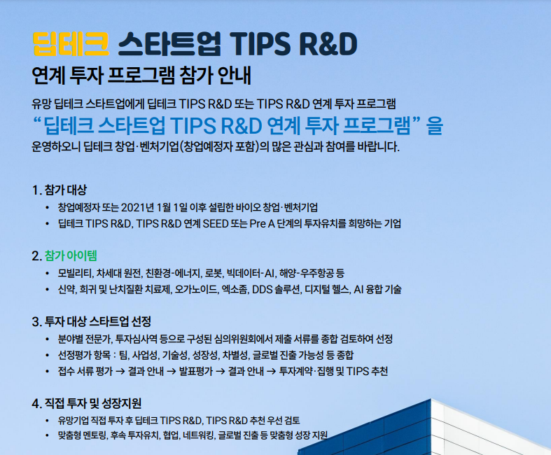 지원 관리 기관: 팁스 사무국 https://www.jointips.or.kr